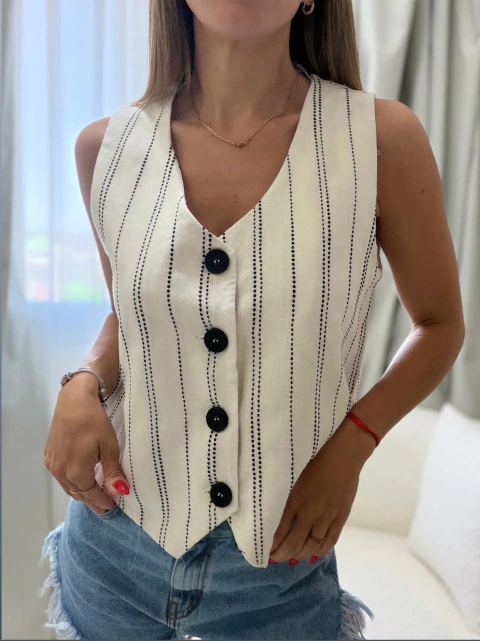 Chaleco Tessa. Este modelo está confeccionado de lino. La tela es súper fresquita y liviana.